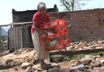 | Bà Phạm Thị Ngon thu thập lại những gì còn lại sau lốc xoáy |
