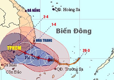 Dự báo trong khoảng 12 giờ tới, bão sẽ di chuyển chủ yếu theo hướng Tây, mỗi giờ đi được 5 - 10km. Đến sáng 1-4, tâm bão chỉ còn nằm cách bờ biển các tỉnh Bình Thuận - Bến Tre khoảng 120km về phía Đông Đông Nam. Sau đó, bão sẽ di chuyển theo hướng giữa Tây và Tây Tây Bắc, mỗi giờ đi được khoảng 10km rồi có khả năng suy yếu thành áp thấp nhiệt đới khi vừa chạm vào đất liền vào chiều 1-4. Khoảng đêm 1-4 và ngày 2-4, khi đi sâu vào địa phận các tỉnh từ Bình Thuận đến Bến Tre, áp thấp nhiệt đới sẽ tiếp tục suy yếu thành một vùng áp thấp ở biên giới Campuchia.