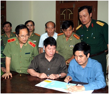 Bộ trưởng Cao Đức Phát chỉ đạo phương án chống bão số 8 tại Kim Sơn (Ninh Bình). Ảnh: Đức Lam |