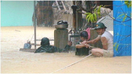Tại tỉnh Hà Tĩnh, mặc dù nước lũ ở sông Ngàn Sâu đã rút nhưng đến thời điểm này, đường xuống một số thôn ở các xã Hương Điền, Phương Mỹ, Hương Đô của huyện Hương Khê vẫn chìm sâu trong nước, người dân phải đi lại bằng thuyền.