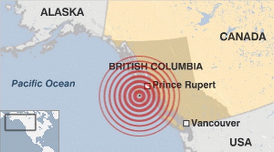 Cơ quan khảo sát địa chất Mỹ (USGS) cho biết động đất xảy ra vào khoảng 3g04 sáng 28.10 theo giờ quốc tế (10g04 sáng 28.10 theo giờ VN), tâm chấn sâu 17,5km và cách khu vực Prince Rupert thuộc tỉnh British Columbia 197km về phía nam-tây nam.