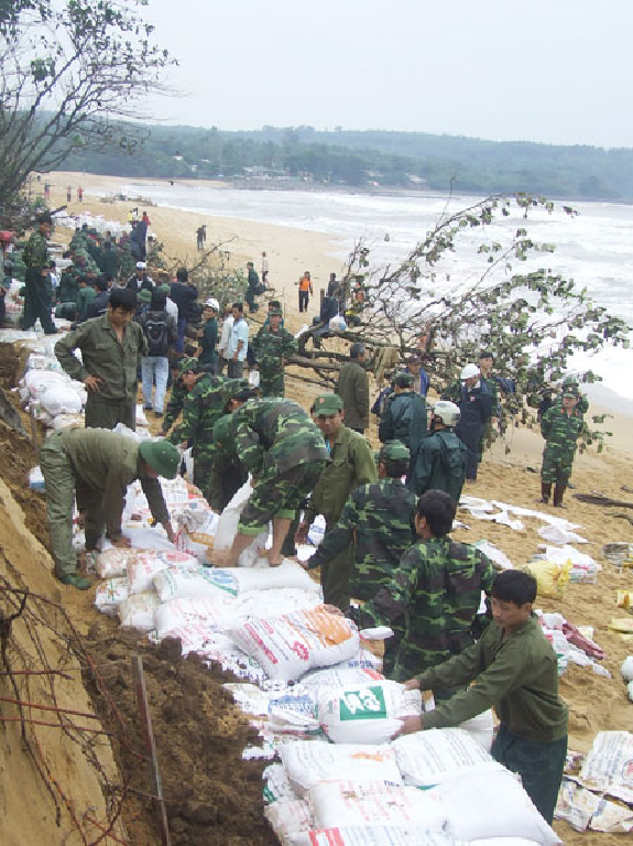 Đại tá cho biết thêm, các cán bộ, chiến sĩ tham gia giúp dân lần này đã được quán triệt tinh thần phải nỗ lực hết mình, phấn đấu hoàn thành bờ kè tạm này ngay trong ngày hôm nay. Vì có thể chiều và đêm nay sóng, triều cường sẽ tiếp tục lớn, nếu không sớm hoàn thành, mọi nỗ lực từ sáng đến giờ của anh em sẽ không còn hiệu quả.