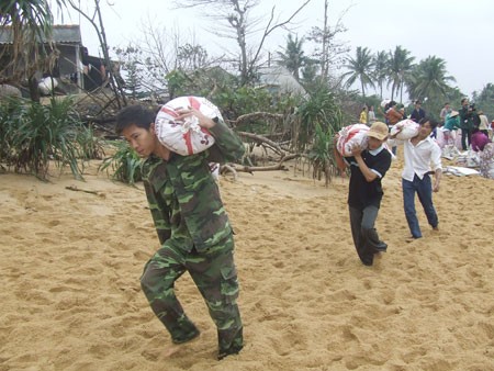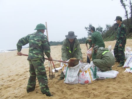 Đại tá Trịnh Đình Thạch, Phó Chỉ huy trưởng, Tham mưu trưởng Bộ Chỉ huy Quân sự tỉnh cho biết, ngay sau khi nhận được lệnh, đơn vị đã nhanh chóng điều động cán bộ, chiến sĩ tham gia xuống địa bàn giúp nhân dân khắc phục hậu quả thiên tai. Trong đợt này, đơn vị đã huy động hơn 12.000 bao cát và huyện Bình Sơn hỗ trợ toàn bộ số cây làm cọc giữ bao cát.