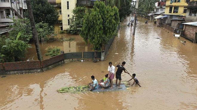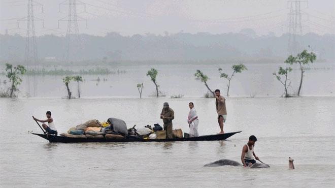 Ấn Độ đang trải qua trận lụt kinh hoàng nhất kể từ năm 1998, làm 121 người chết, hơn 2,2 triệu người phải rời bỏ nhà cửa. Ít nhất 559 con vật quý hiếm của khu bảo tồn Kaziranga phía đông bắc nước này chết vì không thể chạy thoát dòng lũ nhấn chìm 90% diện tích công viên quốc gia - Ảnh: BBC