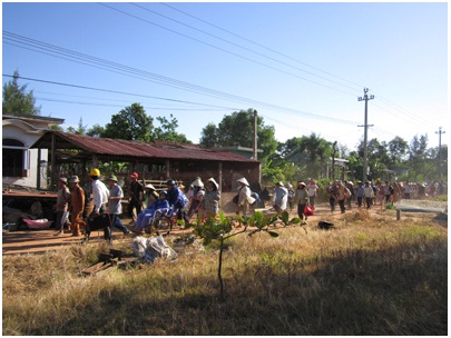 Nằm trong khuôn khổ dự án “Xây dựng cộng đồng an toàn hơn và có khả năng phục hồi tốt hơn về kinh tế” do Ngân hàng Rabobank/Hội Chữ thập đỏ Hà Lan tài trợ, Hội Chữ thập đỏ tỉnh đã chỉ đạo các xã thực hiện các hoạt động của dự án và tổ chức các cuộc diễn tập ứng phó thảm họa. Tình huống giả định được đưa ra là trung tâm của một cơn bão lớn có gió mạnh cấp 12, giật cấp 13 đổ bộ trực tiếp vào huyện Triệu Phong, kết hợp với nước lũ dâng cao gây ngập lụt ở nhiều nơi. Trước tình hình nguy cấp trên, Ban Chỉ huy phòng chống lụt bão - tìm kiếm cứu nạn các xã triệu tập cuộc họp khẩn cấp để triển khai kế hoạch sơ tán những hộ dân ở các vùng nguy hiểm đến các địa điểm an toàn và phân công nhiệm vụ cụ thể cho các nhóm ứng phó cộng đồng.
