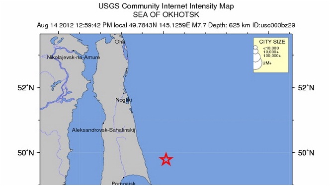 USGS cho biết tâm chấn của trận động đất trên biển Okhotsk, có độ sâu hơn 625km. Khoảng cách từ tâm chấn đến địa điểm gần nhất là huyện Poronaysk thuộc vùng Viễn Đông của Nga, hơn 160km.