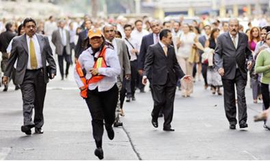 Người dân thành phố Mexico City bỏ chạy ra đường khi các tòa nhà bị rung lắc trong trận động đất mạnh 7 độ richter |