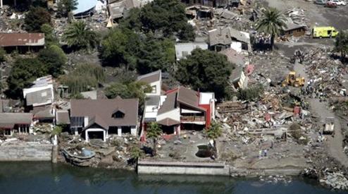 | Một khu vực bị ảnh hưởng bởi trận động đất mạnh 8,8 độ Richter ở Chile năm 2010