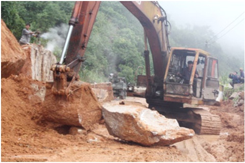| | Nỗ lực san ủi đất đá để giải tỏa ách tắc