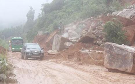 Hiện ngành chức năng đang nổ mìn phá đá để giải toả hoàn toàn ách tắc tại đoạn đường này.