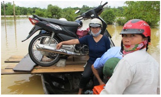 Người dân phiêu lưu đi đò trên lũ sông Ngàn Sâu |