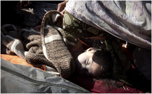 Thi thể một bé gái thiệt mạng được tìm thấy trong đống đổ nát của một tòa nhà. |