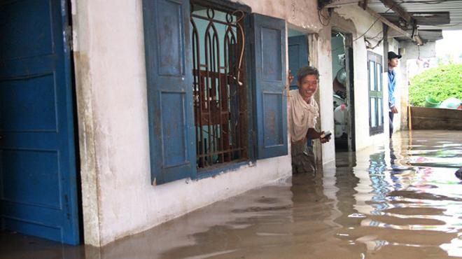 Một khu nhà trọ ngập chìm trong nước - Ảnh: hữu khoa |