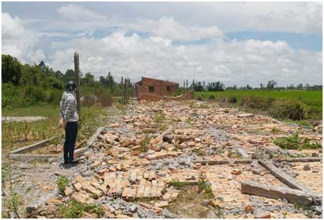 Những căn nhà sập đổ hoàn toàn và bay hết mái, chỉ còn trơ nền gạch |