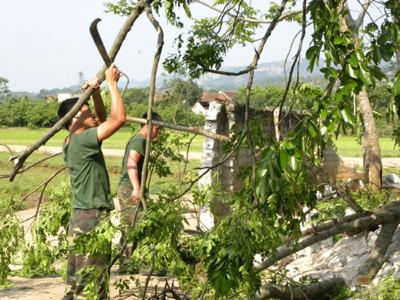 Cán bộ chiến sĩ Trung đoàn 141, Sư đoàn 3, Quân khu 1 giúp nhân dân xã Chi Lăng, huyện Chi Lăng khắc phục hậu quả của lốc xoáy - Ảnh: Lê Minh |