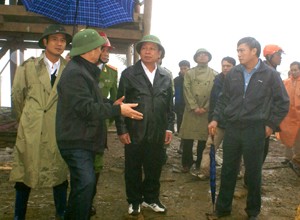 | Đồng chí Bùi Văn Tỉnh, UVT.ư Đảng, Chủ tịch UBND tỉnh trực tiếp chỉ đạo khắc phục sự cố sạt lở đá trên tuyến quốc lộ 6 |