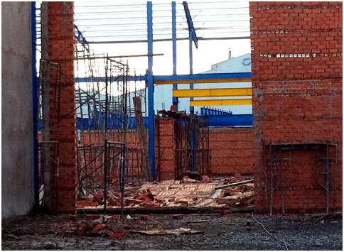 Bức tường dài 24m, cao 7m đã sập trúng các nạn nhân. Ảnh: Nguyệt Triều |