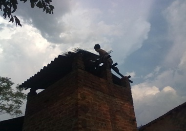 | | Gió lốc làm tốc mái nhiều lò sấy thuốc lá của nhân dân xã Đức Long (Hòa An)