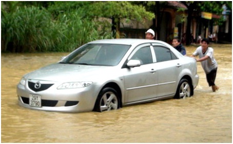 Nước ngập sâu từ 30-40cm khiến cho nhiều phương tiện bị chết máy phải thuê xe và người kéo mới thoát khỏi khu vực bị ngập.