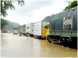 Đoạn đường bị ngập lụt kéo dài 5km từ tổ 10 phường Nam Sơn, thị xã Tam Điệp, tỉnh Ninh Bình đến khu vực dốc Xây giáp thị xã Bỉm Sơn, tỉnh Thanh Hóa, gây ách tắc giao thông nghiêm trọng trong nhiều giờ. Nước chảy xiết rất nguy hiểm cho người và xe qua lại.