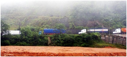 Quốc lộ 8A đoạn từ Km81 - Km82 bị sạt mái taluy, tắc đường trong hai ngày qua, hiện đã được thông xe một chiều lúc 11h45', nhiều ô tô không lưu thông được |