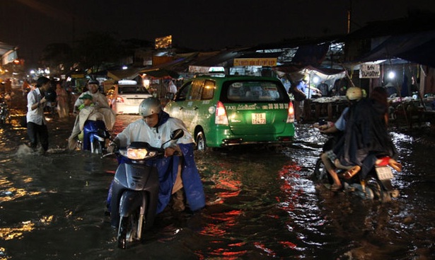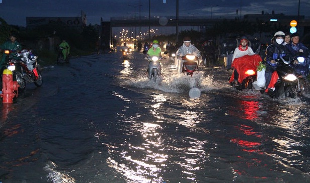 Tương tự, đường Võ Văn Kiệt ngập sâu nghiêm trọng, đường như một con sông kéo dài gần 2km đoạn qua địa bàn quận 8. Nhiều xe cộ bị chết máy, một số còn lại cho xe chạy trên vỉa hè và chạy vào làn đường dành cho ôtô.