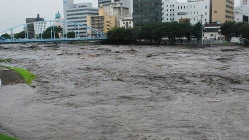 Trong khi đó tại thành phố Taketa, tỉnh Oita, một người đàn ông thiệt mạng sau khi rơi xuống một con sông nước đang dâng. Một người khác mất tích. Chính quyền thành phố đã yêu cầu hoặc khuyến cáo khoảng 25.000 dân sống gần con sông này sơ tán.