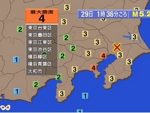 Trận động đất xảy ra vào lúc 1 giờ 26 phút sáng (giờ địa phương) với tâm chấn nằm ở độ sâu 80km ở Tây Bắc tỉnh Chiba, tọa độ 35,8 độ vĩ Bắc và 140,1 độ kinh Đông.