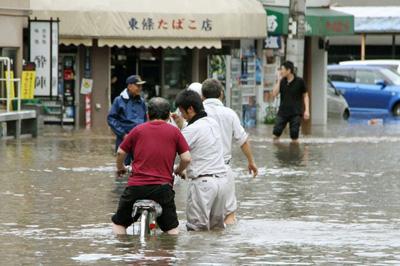 Hình ảnh truyền hình cho thấy, nhiều địa phương ở tây nam Nhật Bản, nước lũ đã ngập trắng các đường phố, thậm chí chạm tới trần nhà.