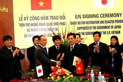 Theo đó, Nhật Bản sẽ viện trợ cho Việt Nam 600 triệu yên (tương đương khoảng 7,2 triệu USD). Khoản viện trợ lần này sẽ dùng để mua các máy móc cần thiết cho khôi phục, tái thiết các cơ sở hạ tầng công cộng như: đê, mương, đường liên khu… bị thiệt hại bão, lũ gây ra năm 2011 ở lưu vực sông Mê Không. Từ nguồn viện trợ này sẽ giúp cho Việt Nam nhanh chóng tái thiết và khôi phục những thiệt hại và cải thiện cơ chế phòng, chống thiên tai.