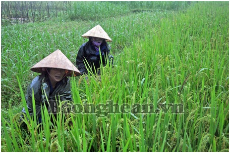 Bà con nông dân Nam Đàn gặp lúa chạy lụt |