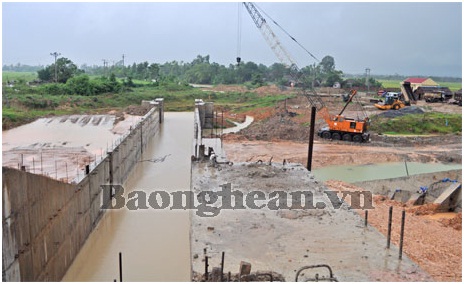 Công trường thi công cống Bara Nam Đàn, bảo đảm an toàn trong mùa mưa lũ. |