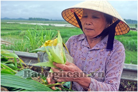 Ngô ở Thanh Chương đang non, nhưng bào con nông dân vẫn thu hoạch để chạy lụt |