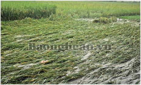 Mưa to gập đổ lúa hè thu ở xã Nam Anh – Nam Đàn. |