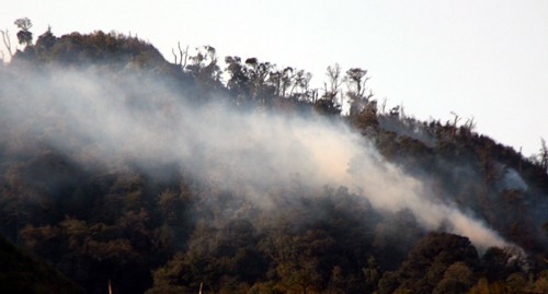 Gạt mồ hôi trên gương mặt đen nhẻm vì nắng, bụi và khói, bà Hầu Thị Sú (thôn Dền Thàng, xã Tả Van) trầm ngâm nhìn vạt rừng vừa được dập tắt. Từ khi vụ chảy rừng xảy ra, bà Sú đã 2 lần lên chữa cháy và đêm 5/3, bà cùng nhiều người dân trong thôn ở lại tiếp tục chữa cháy rừng.