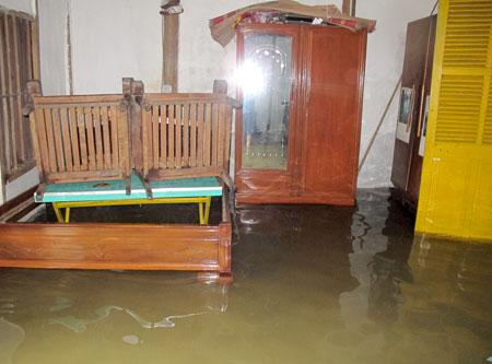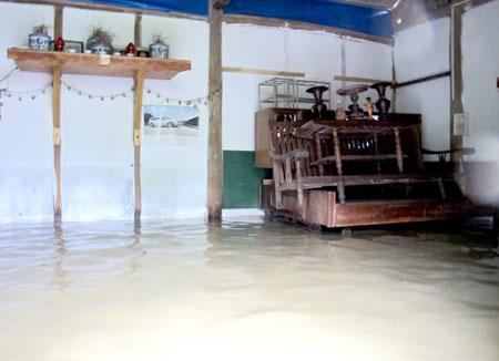 Năm nào cũng vậy, hễ mùa mưa đến là gia đình bà Hoàng Thị Yến và ông Đoàn Ngọc Việt ở tổ 53, phường Nguyễn Thái Học, thành phố Yên Bái lại chìm trong biển nước. Nhà nằm ngay sát hồ công viên Yên Hoà, cứ trời mưa to là nước hồ dâng lên, tràn vào nhà. Trận mưa vừa qua, nước ngập vào nhà 0,8m. Rất may, tài sản của gia đình đã được bà con trong tổ đến giúp đỡ, vận chuyển đến nơi an toàn. Tuy nhiên, nguồn nước và sinh hoạt hàng ngày của gia đình đã bị ảnh hưởng nghiêm trọng.