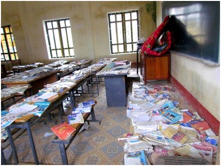 Lớp học của học sinh sau lũ. Ảnh HH |