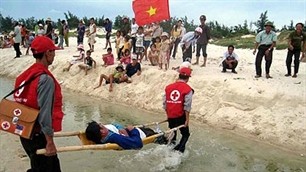 | Diễn tập ứng phó với bão lụt (Ảnh: KT) |