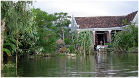 Nhiều nhà ở xóm Phan Thanh, xã Long Thành còn bị nước cô lập |