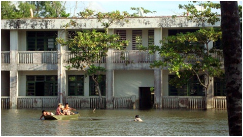 Trường học ngập sâu trong nước, học sinh phải nghỉ học |