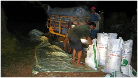 Tranh thủ tuốt lúa cả ban đêm để lúa không nảy mầm |