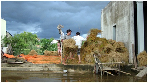 Người dân trong huyện cũng tranh thủ nước rút, ra đồng thu hoạch những diện tích lúa chân cao, đưa lên bờ, không cho lúa nảy mầm. Thậm chí có nơi, bà con phải tuốt lúa ngay trong đêm để hạn chế thiệt hại.