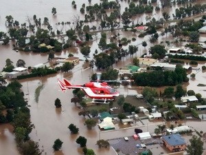 Máy bay chở Thủ tướng Julia Gillard thị sát khu vực ngập lụt ở Wagga Wagga, ngày 7/3. (Ảnh: AFP/TTXVN) |