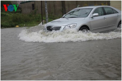 Trong khi đó, phố Minh Khai, Lê Hồng Phong, hay Nguyễn Thái Học cũng như Lý Thường Kiệt nước đã ngập sâu từ 40-60cm, làm cho hàng trăm xe máy, ô tô đi lại gặp nhiều khó khăn, trong đó có nhiều xe máy đã chết máy khi lưu thông vào những tuyến phố này.