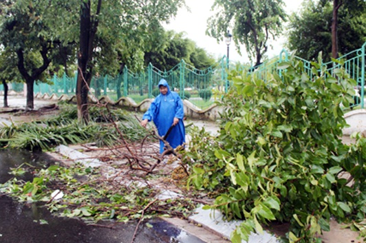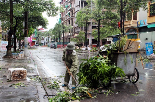Người dân khắc phục hậu quả sau cơn bão số 5 tại TP.Móng Cái |