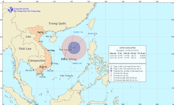 Dự báo trong 24 giờ tới, áp thấp nhiệt đới di chuyển chậm chủ yếu theo hướng Đông, mỗi giờ đi được khoảng 5 km, có khả năng mạnh lên thành bão và ảnh hưởng trực tiếp đến khu vực quần đảo Hoàng Sa. Đến 13 giờ ngày 02/10, vị trí tâm bão ở vào khoảng 16,8 độ Vĩ Bắc; 115,8 độ Kinh Đông, cách quần đảo Hoàng Sa khoảng 390 km về phía Đông. Sức gió mạnh nhất vùng gần tâm bão mạnh cấp 8 (tức là từ 62 đến 74 km một giờ), giật cấp 9, cấp 10.