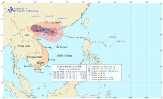 Dự báo trong 12 giờ tới, bão di chuyển theo hướng giữa Tây và Tây Tây Bắc, mỗi giờ đi được khoảng 25km. Đến 22 giờ ngày 17/08, vị trí tâm bão ở vào khoảng 21,6 độ Vĩ Bắc; 107,6 độ Kinh Đông, ngay trên khu vực tỉnh Quảng Ninh. Sức gió mạnh nhất vùng gần tâm bão mạnh cấp 8 (tức là từ 62 đến 74 km một giờ), giật cấp 9, cấp 10.