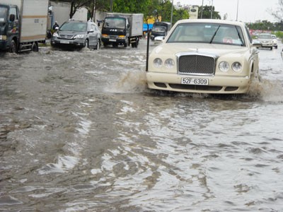 Trong đó, ngập nặng là tuyến đường Nguyễn Xí, Quốc lộ 13, Nguyễn Hữu Cảnh… Nước ngập sâu khiến nhiều xe gắn máy lưu thông bị chết máy dắt bộ trên đường. Tại các tuyến đường Nguyễn Xí, Nơ Trang Long (Bình Thạnh) xảy ra tình trạng ngập nước do ảnh hưởng của công trình thi công dự án nâng cấp mở rộng cầu Đỏ; còn Quốc lộ 13 (đoạn từ ngã tư Bình Triệu đến cầu Bình Triệu), Kha Vạn Cân xảy ra tình trạng ngập nước là do ảnh hưởng của công trình thi công dự án đường Tân Sơn Nhất-Bình Lợi-Vành Đai Ngoài.