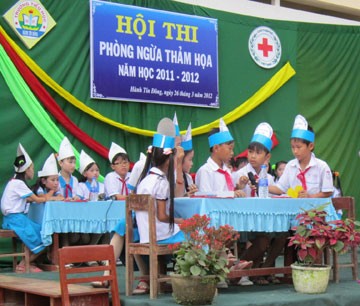 Thời điểm này, các trường học trong địa bàn hưởng lợi dự án đang đồng loạt tiến hành các hội thi, diễn tập về hoạt động phòng ngừa thảm họa. Thông qua hội thi tuyên truyền, thi vẽ tranh về phòng ngừa thảm họa, tổ chức trò chơi rung chuông vàng hay các hội thi tài năng, hái hoa dân chủ, thi tiểu phẩm… giúp các em học sinh ôn lại các kiến thức đã được học, giúp các em an toàn hơn khi mua mưa bão sắp tới.