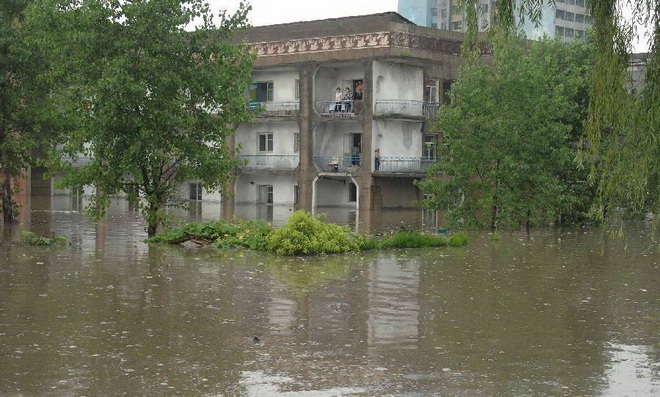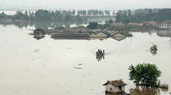 Kim Kwang Dok - một quan chức thành phố - cho AP biết trong ngày 30-7, nước sông Chongchon dâng cao gây ngập nặng nhiều khu vực, nhấn chìm nhiều cánh đồng và cắt đứt hệ thống viễn thông.